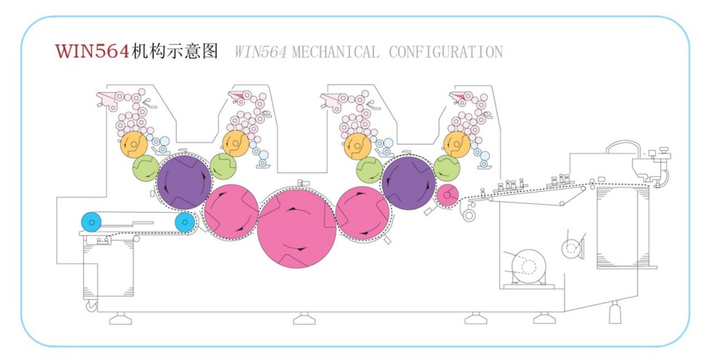 Cylinder dociskowy o podwójnej średnicy i potrójny dostępny jest cylinder przenoszący średnicę, skrócenie czasu podłączenia papieru, poprawa dokładność rejestracji Cylinder płytowy i cylinder kocowy przechodzą przez nośnik, działający stabilnie, zapewniający kwalifikowany druk obraz.