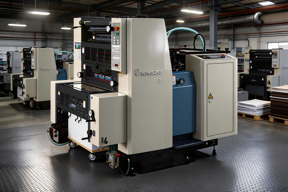 1) Duża, jednokolorowa, arkuszowa prasa offsetowa formatu A3 z nawilżaniem, przeznaczona do drukowania na różnego rodzaju papierze, w tym na papierze grubym i cienkim, formularzach wielowarstwowych, papierze listowym itp. Obsługuje drukowanie dokumentów w jednym kolorze i drukowanie zmiennej numeracji z systemem nawilżania alkoholem.