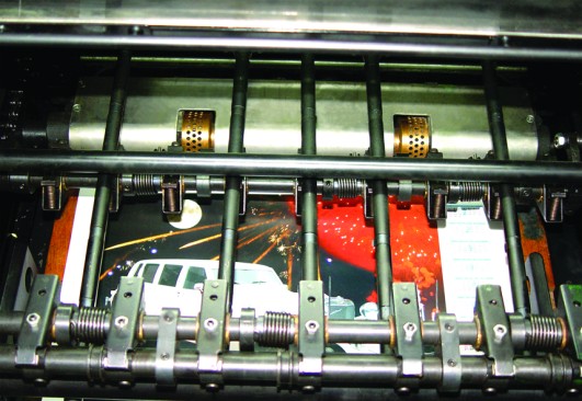 1. Mechanizmy transportu papieru takie jak głowica podająca papier, podciśnieniowy stół podający papier, przednia prowadnica i chwytaki papieru zapewniają, że prasa może transportować papiery o różnej grubości.